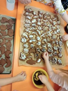 13 grudnia przedszkolaki z grupy młodszej i starszej piekły pierniki. Zapach unosił się po całym przedszkolu. Następnie dzieci ozdabiały upieczone pierniczki lukrem oraz kolorowymi posypkami.