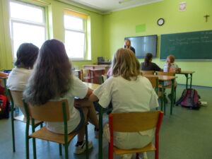 Na początku roku szkolnego naszą szkołę odwiedziła Pani policjantka. Spotkała się z dziećmi z wszystkich klas aby porozmawiać o bezpieczeństwie na drodze oraz bezpieczeństwie kontaktu z nieznajomą osobą. Uczniowie mieli